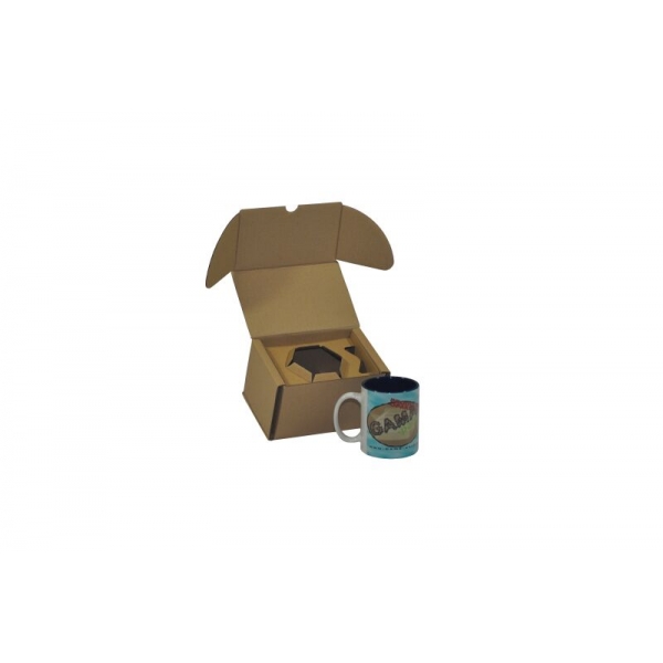Opakowanie posiada odpowiednio wyprofilowany spód, zabezpieczający kubek przed zniszczeniem, oraz wkładkę utrzymującą kubek w jednej stałej pozycji.