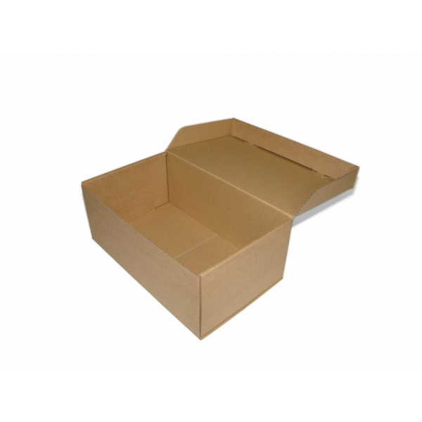 Kartony na buty wykonane są z twardej tektury falistej w naturalnym odcieniu.